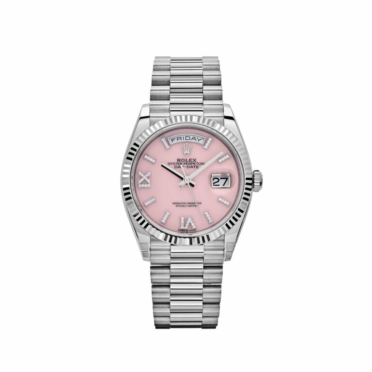 Rolex Day-Date 36 128239 White Gold Pink Opal Diamond Roman Numerals Dial