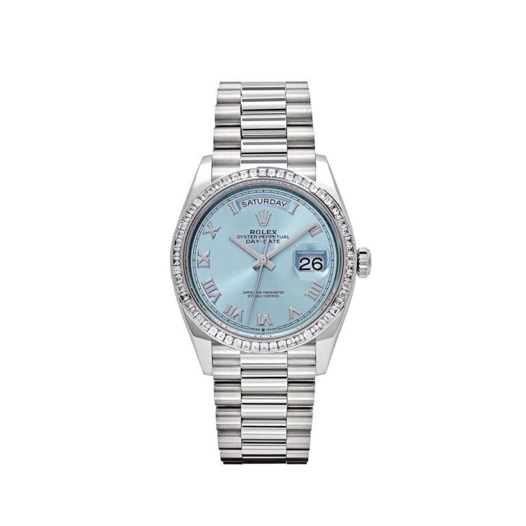 Rolex Day-Date 36 128396TBR Platinum Ice Blue Dial Diamond Bezel (2024)
