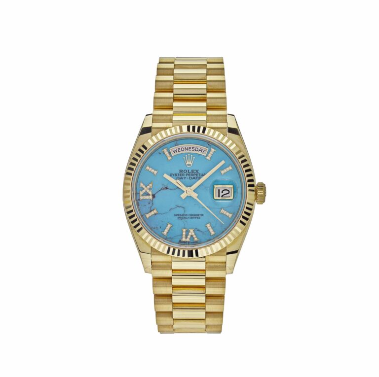 Rolex Day-Date 36 128238 Yellow Gold Turquoise Diamond Dial
