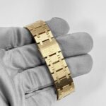 The?dark grey dial, featuring the signature?“Petite Tapisserie” pattern, provides a striking contrast to the warm gold case, ensuring both depth and visual interest. The applied?yellow gold hour markers and hands, coated with luminescence, offer excellent legibility. Powered by a?quartz movement, the?56175BA?delivers precise and reliable timekeeping while maintaining a slim profile. As a vintage Royal Oak model, this reference holds special appeal for collectors who appreciate the blend of?iconic design, luxurious materials, and classic proportions?that define Audemars Piguet??s enduring legacy.