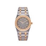 This Audemars Piguet 56175TR.0.0789TR is crafted in a 33mm two-toned tantalum and rose gold case, styled on a matching bracelet. The slate dial is elegantly complemented by the rose gold bezel and rose gold hour markers. A reliable quartz movement and practical date window at 3 o’clock prove to be the perfect balance between classic and contemporary.