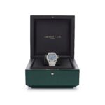 This Selfwinding ’50th Anniversary’ is crafted in a 34mm stainless steel case with a bezel set with brilliant-cut diamonds. The light blue dial features the ‘Grande Tapisserie’ pattern, white gold applied hour-markers and Royal Oak hands with luminescent coating. The watch comes on a stainless steel bracelet with AP folding clasp.