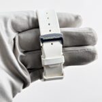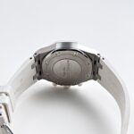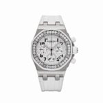The Audemars Piguet 26048SK.ZZ.D010CA.01 redefines sporty elegance with its striking diamond-set bezel and robust stainless steel case. The white dial, accented with signature “Mega Tapisserie” detailing, complements the sporty aesthetic, while the rubber strap ensures a comfortable and versatile fit. A perfect blend of sophistication and functionality, this timepiece stands out as a statement of refined luxury.
