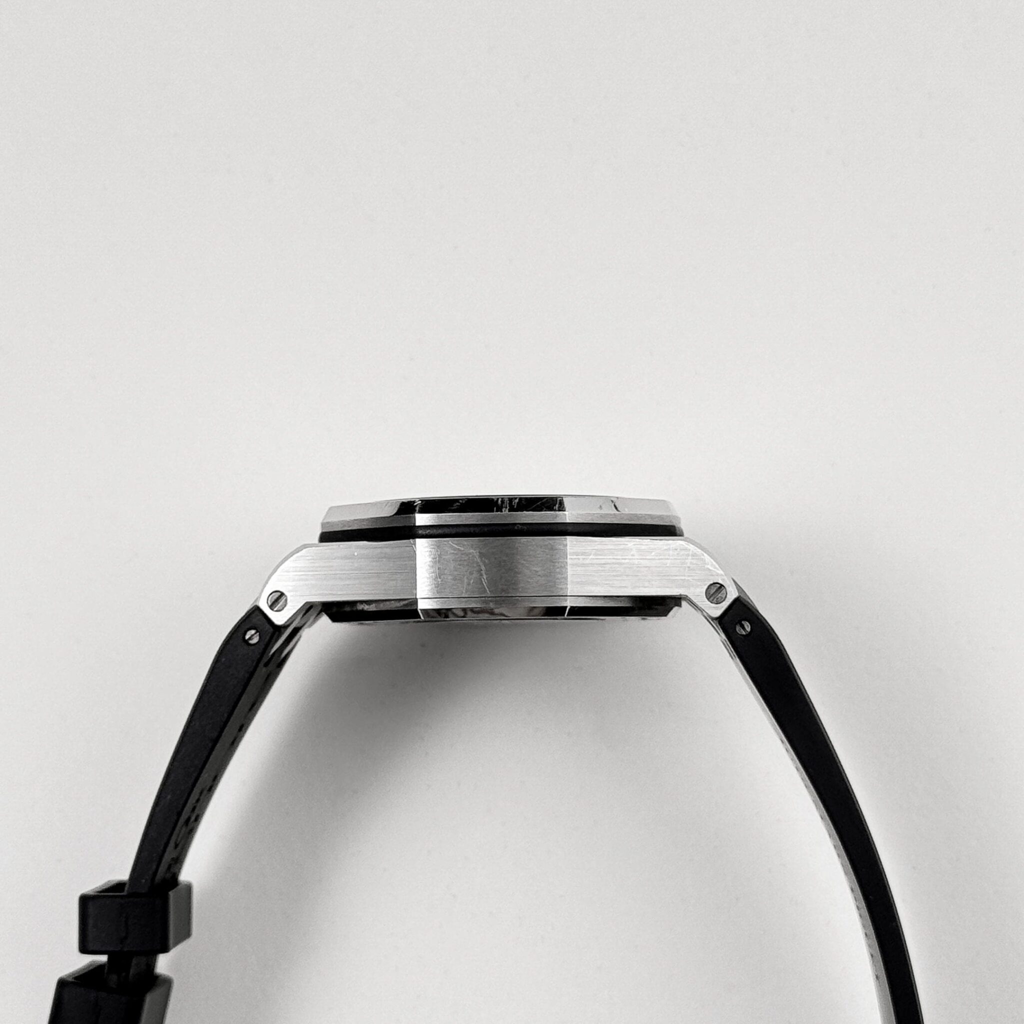 This is crafted in a stainless steel case measuring 37mm complimented by a diamond set bezel. The black dial features a ‘Lady Tapisserie’ design giving this women’s watch a softer look. The watch comes on an black rubber strap with a stainless steel AP folding clasp.