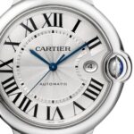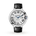 Floating like a balloon and as blue as the cabochon safely nestled in its side, the Ballon Bleu watch by Cartier adds a dash of elegance to male and female wrists alike. Roman numerals are guided on their path by a deep blue winding mechanism. The convex curves of the case, guilloche dial, sword-shaped hands, and polished or satin-finish links of the bracelet ensure that the Ballon Bleu watch by Cartier floats within the world of Cartier watchmaking.