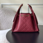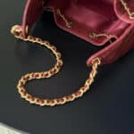 Strap: Equipped with an adjustable leather-interlaced chain strap for versatile carrying options—by hand, on the shoulder, or cross-body.