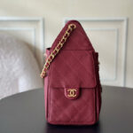 The CHANEL 25 bag reinterprets a house icon with a contemporary attitude, defined by its signature drawstring closure and practical side pockets. The small size offers the perfect balance of casual shape and everyday utility.