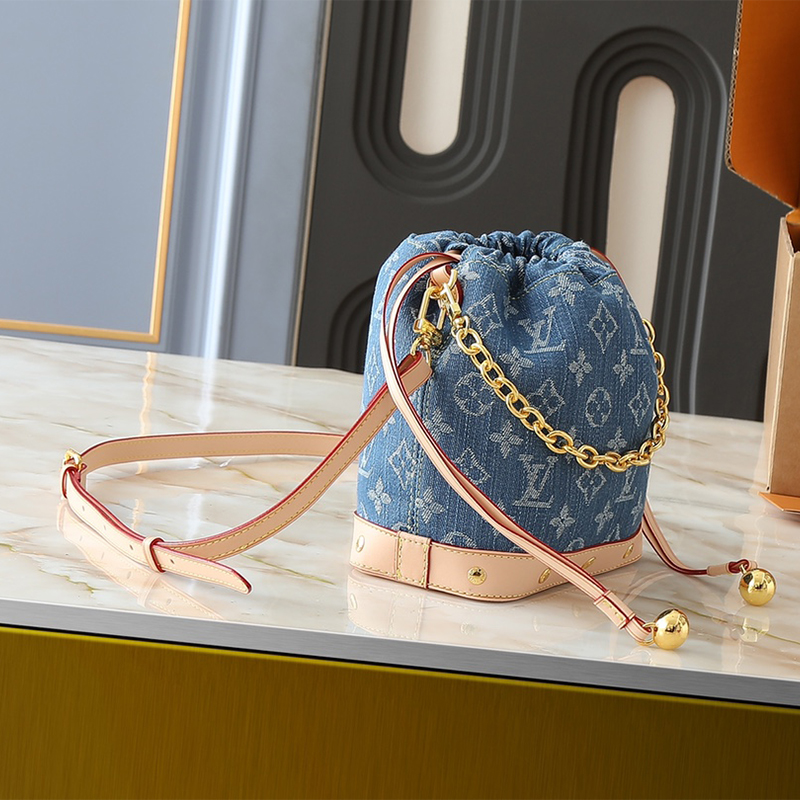 - Drawstring closure with LV-engraved round charm