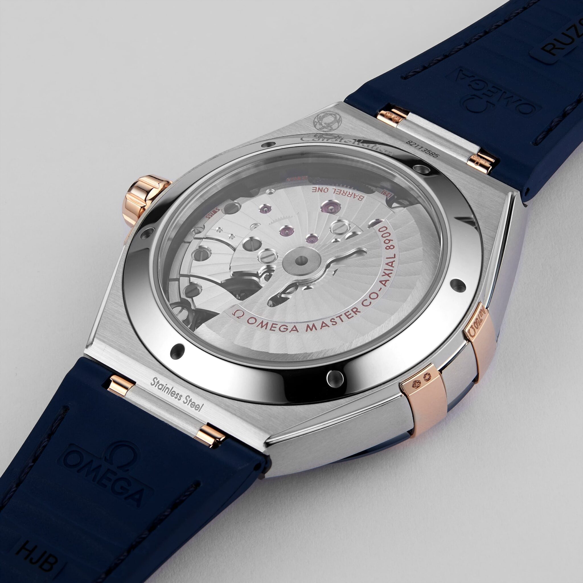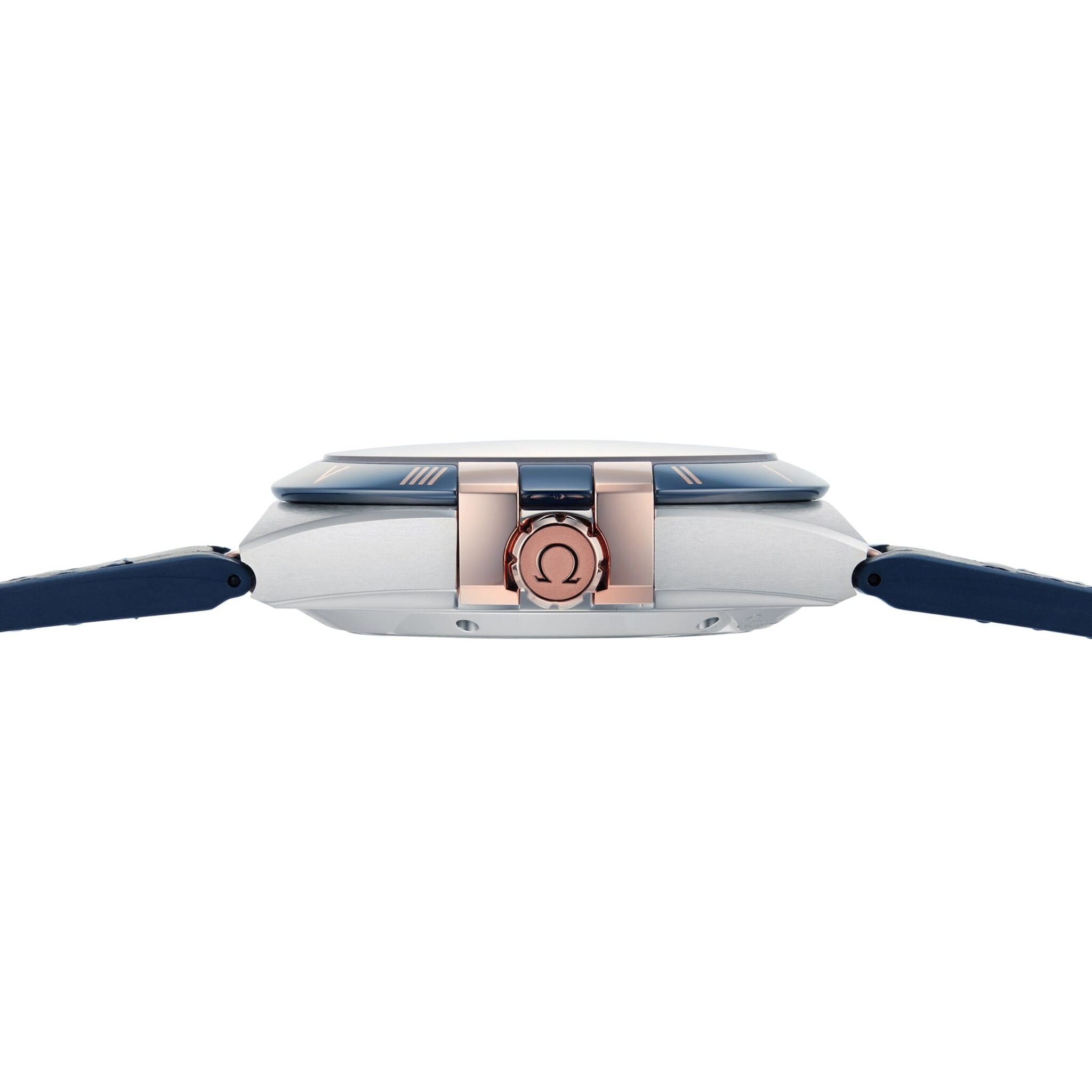 A tribute to Omega??s accomplishments in the 20th century Constellation heritage with the 8900 calibre movement 41mm stainless steel and 18K Sedna? gold case paired with a blue, rubber-lined leather strap Sun-brushed blue dial framed by a polished blue ceramic bezel Master chronometer certified by METAS ICONIC PRECISION Launched in 1952, the iconic Constellation collection was created to pay tribute to Omega??s countless precision accomplishments during the early 20th century. Powered by the brand??s most advanced movements, the striking models in this collection are characterised by dramatic, enduring design. Each model features four claws on the side of the case, half-moon facets, Roman numerals, and a trapezoidal date window beneath a single star. INCREDIBLE TECHNICAL PERFORMANCE This 41mm timepiece features an 18K Sedna? gold and stainless steel case, paired with a blue, rubber-lined leather strap. With a sun-brushed finish, the deep blue dial features 18K Sedna? gold hands and hour markers, and is framed by a polished, blue ceramic bezel with Ceragold? Roman numerals. Visible through the transparent caseback, the 8900 calibre movement provides flawless precision and impeccable performance.