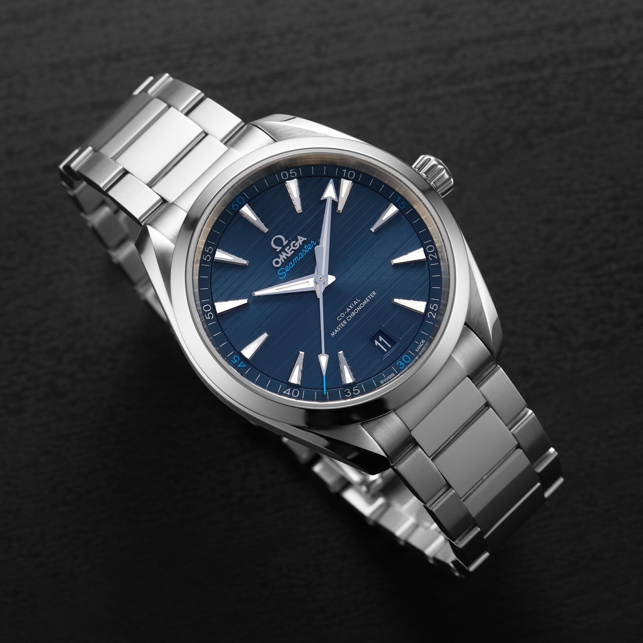 A tribute to Omega??s rich maritime heritage Seamaster heritage with the 8900 calibre movement Water resistant to 15 bar (150 metres) 41mm stainless steel case paired with a stainless steel bracelet Master chronometer certified by METAS INSPIRED BY THE OCEAN A tribute to Omega??s rich maritime heritage, the Seamaster Aqua Terra collection balances technical sophistication and ocean spirit. The 150m models offer a refreshing new look, with clean aesthetics, a new symmetrical case design, and Master Chronometer movements with extraordinary levels of magnetic resistance. These timepieces are further characterised by a patterned dial, inspired by the wooden decks of luxury boats. TECHNICAL SOPHISTICATION This 41mm timepiece is presented in a symmetrical, stainless steel case, paired with a stainless steel bracelet. The blue, sun-brushed dial features a date window at 6 o??clock, replicating the first Omega watch with a date window, released in 1952.The maritime influence can also be seen in the wave-edged design on the caseback. With magnetic field resistance to 15,000 gauss, the 8900 calibre movement offers precision and power.