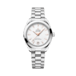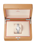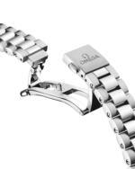The watch is presented on an integrated stainless-steel bracelet with beautifully rounded polished-brushed links, a foldover butterfly clasp, and OMEGA??s easy comfort-adjustment system.