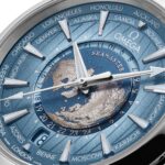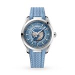 Seamaster Aqua Terra – a tribute to Omega’s rich maritime legacy Keep track of time anywhere in the world 43mm brushed and polished stainless steel case paired with an integrated blue rubber strap 24-hour, glass ring indicating day and night Water resistant to 15 bar (150 metres) TOUR THE WORLD Keep track of time wherever you are in the world with the Omega Seamaster Aqua Terra Worldtimer collection. This unique collection presents the teak-patterned dials seen elsewhere in the Aqua Terra collection, with the addition of a truly international influence. International destinations are listed around the dial, including the brand’s hometown of Biel. At the very heart of the dial, the planet Earth is depicted via a cutting-edge view of the continents, achieved with advanced laser- ablation technology on a Grade 5 titanium plate. KEEP TRACK OF TIME AROUND THE GLOBE This 43mm timepiece features a polished stainless steel case paired with an integrated blue rubber strap. The impressive, Summer blue dial features vertical teak stripes, rhodium-plated hands and indexes, and silvery circle of global destinations. At the centre of the dial sits a 24-hour, glass ring, with light blue to indicate daytime and dark blue to indicate night. This international chronograph is powered by a Co-Axial Master Chronometer 8938 calibre movement for the ultimate precision, wherever you are in the world.