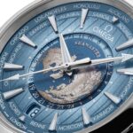 Seamaster Aqua Terra – a tribute to Omega’s rich maritime legacy Keep track of time anywhere in the world 43mm brushed and polished stainless steel case paired with a matching bracelet 24-hour, glass ring indicating day and night Water resistant to 15 bar (150 metres) TOUR THE WORLD Keep track of time wherever you are in the world with the Omega Seamaster Aqua Terra Worldtimer collection. This unique collection presents the teak-patterned dials seen elsewhere in the Aqua Terra collection, with the addition of a truly international influence. International destinations are listed around the dial, including the brand’s hometown of Biel. At the very heart of the dial, the planet Earth is depicted via a cutting-edge view of the continents, achieved with advanced laser-ablation technology on a Grade 5 titanium plate. KEEP TRACK OF TIME AROUND THE GLOBE This 43mm timepiece features a polished stainless steel case paired with a matching bracelet. The impressive, Summer blue dial features vertical teak stripes, rhodium-plated hands and indexes, and silvery circle of global destinations. At the centre of the dial sits a 24-hour, glass ring, with light blue to indicate daytime and dark blue to indicate night. This international chronograph is powered by a Co-Axial Master Chronometer 8938 calibre movement for the ultimate precision, wherever you are in the world.