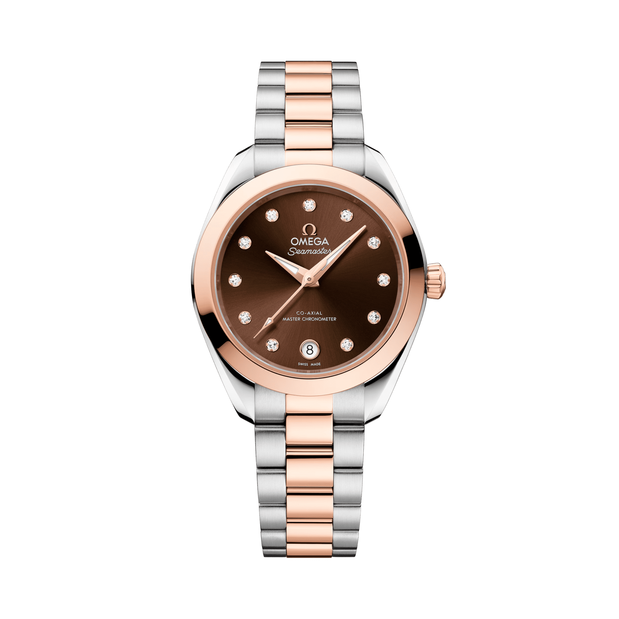 The Seamaster Aqua Terra is a superb tribute to OMEGA??s rich maritime heritage. This slim 30 mm model achieves its refined proportions through OMEGA’s innovative Co-Axial Master Chronometer calibre 8750, certified at the industry’s highest standard by the Swiss Federal Institute of Metrology (METAS).
