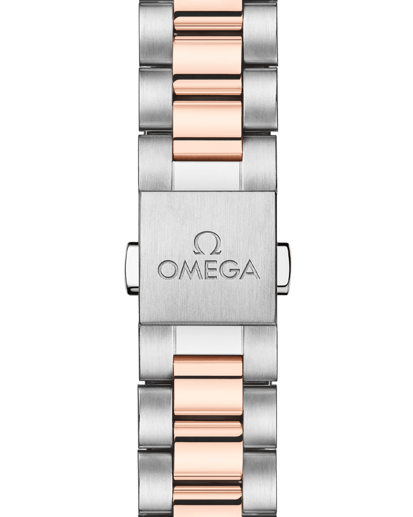 The watch is presented on an integrated stainless steel and 18K Sedna? Gold bracelet with beautifully rounded polished-brushed links, a foldover butterfly clasp, and OMEGA??s easy comfort-adjustment system.