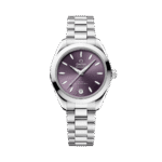 The lavender dial is sun-brushed and colored with tinted lacquer, with a circular date window at 6 o??clock. It is highlighted by 11 boat hull-shaped indexes and redesigned faceted hands, with the minute hand tapering to a delicate point. All the applied elements and hands are in 18K white gold, while the indexes and hands are also filled with white Super-LumiNova which emits a blue glow.