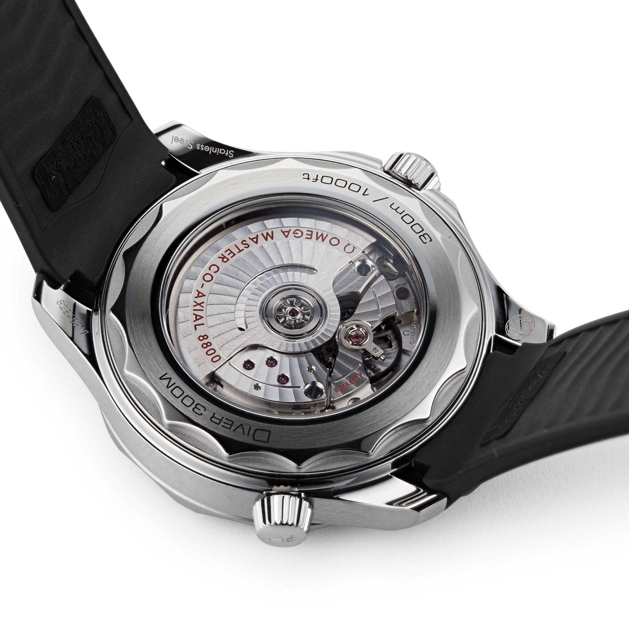 The modern iteration of the iconic 1957 timepiece Seamaster 300 – OMEGA??s classic dive watch for professionals The choice of James Bond for over 25 years OMEGA Calibre 8800 movement, industry-leading precision 42mm case in stainless steel and ceramic with rubber strap JAMES BOND STYLE Based on the decade??s long heritage of the original Seamaster 300, released in 1957, the Seamaster Diver 300M first appeared in 1993, one of the first OMEGA timepieces to sport the Professional inscription on the dial. This iconic piece was immediately adopted by the James Bond franchise to best represent the alluring combination of dry martini elegance and action- packed durability of the world??s most famous spy. OMEGA??s long ocean heritage informs the modern collection, and updates it with industry-leading technical innovation and design iterations that maintain the enduring appeal of the Seamaster. PRECISION AND DURABILITY This 42 mm model is crafted from stainless steel and includes a black ceramic bezel with a white enamel diving scale. The dial is also polished black ceramic and features a laser-engraved wave pattern and a date window at 6 o??clock. The skeleton hands and raised indexes are rhodium-plated and are filled with white Super-LumiNova, while the helium escape valve has been given an easier-to-use conical design. The watch is presented on a black rubber strap and is powered by the OMEGA Master Chronometer Calibre 8800, officially certified by METAS to resist magnetic fields up to 15,000 gauss. This beautiful, industry-leading movement can be viewed through the sapphire-crystal on the wave-edged caseback.