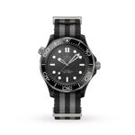 The modern iteration of the iconic 1957 timepiece OMEGA??s classic dive watch for professionals and 007 Unparalleled precision and durability matched with timeless design OMEGA Co-Axial calibre 8806 movement, certified Master Chronometer 43.5mm grade 5 titanium and black ceramic case with fabric strap MILITARY HERITAGE The famous Seamaster Diver 300M was originally released in 1993, one of the first OMEGA timepieces to feature the ??Professional?? inscription on the dial, garnering further renown for being chosen by the James Bond franchise for its military heritage, dry martini elegance and action-packed durability. Maintaining the long ocean heritage of OMEGA, the modern Seamaster Diver 300M collection is updated using cutting-edge technology, resulting in a luxury watch with industry-leading accuracy, timeless design and modern materials. ADVANCED MATERIALS This 43.5 mm model is crafted from ceramic and grade 5 titanium and features a black ceramic bezel with white enamel diving scale. The matching black ceramic dial is laser- engraved with the classic Seamaster wave pattern. The raised indexes and skeleton hands are PVD-coated titanium, filled with white Super-LumiNova, contrasting beautifully with the black dial. For ease of use, the helium escape valve at 10 o??clock has been redesigned with a new conical shape. The watch is paired with a black and grey NATO fabric strap secured with titanium loops and is powered by OMEGA??s Co-Axial Master Chronometer Calibre 8806 movement, officially certified by METAS to withstand magnetic fields up to 15,000 gauss. The titanium wave-edged caseback houses a sapphire crystal for a clear view of this incredible movement.