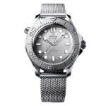 Since 1993, the Seamaster Diver 300M has enjoyed a legendary following. Today??s modern collection has embraced that famous ocean heritage and updated it with OMEGA??s most advanced innovation and design. This 42 mm model is crafted in stainless steel and includes a grade 5 titanium bezel with a laser-ablated diving scale in positive relief and a single dot of white Super-LumiNova at 12 o??clock. PVD stainless steel is used to create the brushed dial as well as the polished and skeletonized hands and indexes, which are filled with white Super-LumiNova. Other markings, including the OMEGA logo, are transferred in black. The watch is presented on a brushed mesh bracelet with clasp, and is driven by the OMEGA Co-Axial Master Chronometer Calibre 8806, which can be seen through the sapphire-crystal caseback.