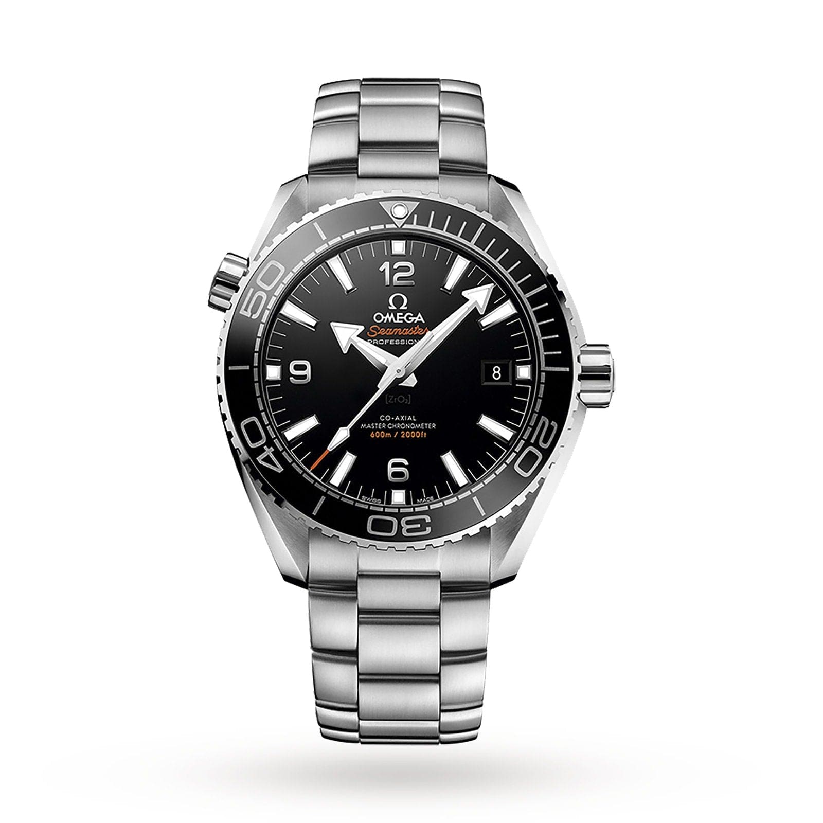 Paying tribute to Omega??s dive watch heritage Power and precision is provided by the 8900 calibre movement Includes a helium escape valve and water resistant to 600 m 43.5 mm stainless steel case with a black ceramic bezel Master Chronometer Certified CELEBRATING OMEGA??S MARITIME HERITAGE Paying tribute to Omega??s diving watch heritage, the Seamaster Planet Ocean collection features Master Chronometer certification, advanced designs and water resistance to 600 metres. Designed for use underwater, the indexes in the Seamaster Planter Ocean collection emit blue light, while the minute hand and bezel glow green to help divers easily keep track of time. MASTER CHRONOMETER This 43.5mm timepiece features a stainless steel case, paired with a stainless steel bracelet, and a unidirectional rotating bezel so divers do not miscalculate their dive times. Powered by an 8900 calibre movement, this self- winding chronometer is complete with a co-axial escapement, water resistance to 600 metres and a helium escape valve for long-term underwater work. The transparent caseback makes it possible to see the calibre movement inside.