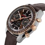 A celebration of a pioneering moment Features a realistic moon image displayed on the dial 42.5 mm stainless steel and 18K Sedna? gold case with a brown leather strap A brown ceramic dial with diamond polished 18K Sedna? gold hands Powered by the 9904 calibre movement A TRIBUTE TO A PIONEERING MOMENT The Omega Speedmaster was the first watch to touch down on the moon??s surface, so it??s only right that the Omega Speedmaster Moonphase is not only capable of measuring every moment here on Earth, but also the phases of the moon. Celebrating a pioneering moment, Moonphase features a realistic moon image displayed on a metallic crystal disc. If you look closely, you can even see Neil Armstrong??s iconic footprint. A CELEBRATION OF TIME This 42.5 mm model features a brown, brushed ceramic dial with diamond polished 18K Sedna? gold hands, and two sub-dials. An accurate Moonphase indicator sits at 6 o??clock, microstructured to create a stunning, high resolution image of the moon in the night sky. The stainless steel case is presented on a brown leather strap with a polished foldover clasp, while the brown ceramic bezel ring features a Ceragold? tachymeter scale. The 9904 calibre movement powers this timepiece with unquestionable precision.