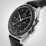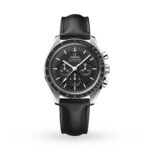 Inspired by the 4th generation Speedmaster style worn on the moon Precision and reliability provided by the 3861 calibre movement 42mm stainless steel case secured with a stainless steel bracelet Central chronograph function Co-Axial escapement for long-lasting precision TAKING TIMEKEEPING TO NEW HEIGHTS Inspired by the 4th generation Speedmaster style worn on the moon, the Speedmaster Moonwatch captures the heart of Omega??s adventurous pioneering spirit, making it one of the world??s most iconic timepieces. Demonstrating the brand??s commitment to evolution, this new 2021 edition offers greater reliability, precision and excellence with Master Chronometer certification. SUPERIOR TIMEKEEPING Presented in an asymmetrical stainless steel case paired with a black leather strap, this legendary timepiece features a black step dial with applied OMEGA logo and the iconic dot over 90 on the anodised aluminium bezel ring. The dial features a small seconds sub-dial, 30-minute and 12-hour recorders, as well as central chronograph functionality. Providing unrivalled precision, the 9908 calibre movement has been officially certified by the prestigious Swiss Federal Institute of Metrology (METAS) and is water resistant to 5 bar (50 metres).