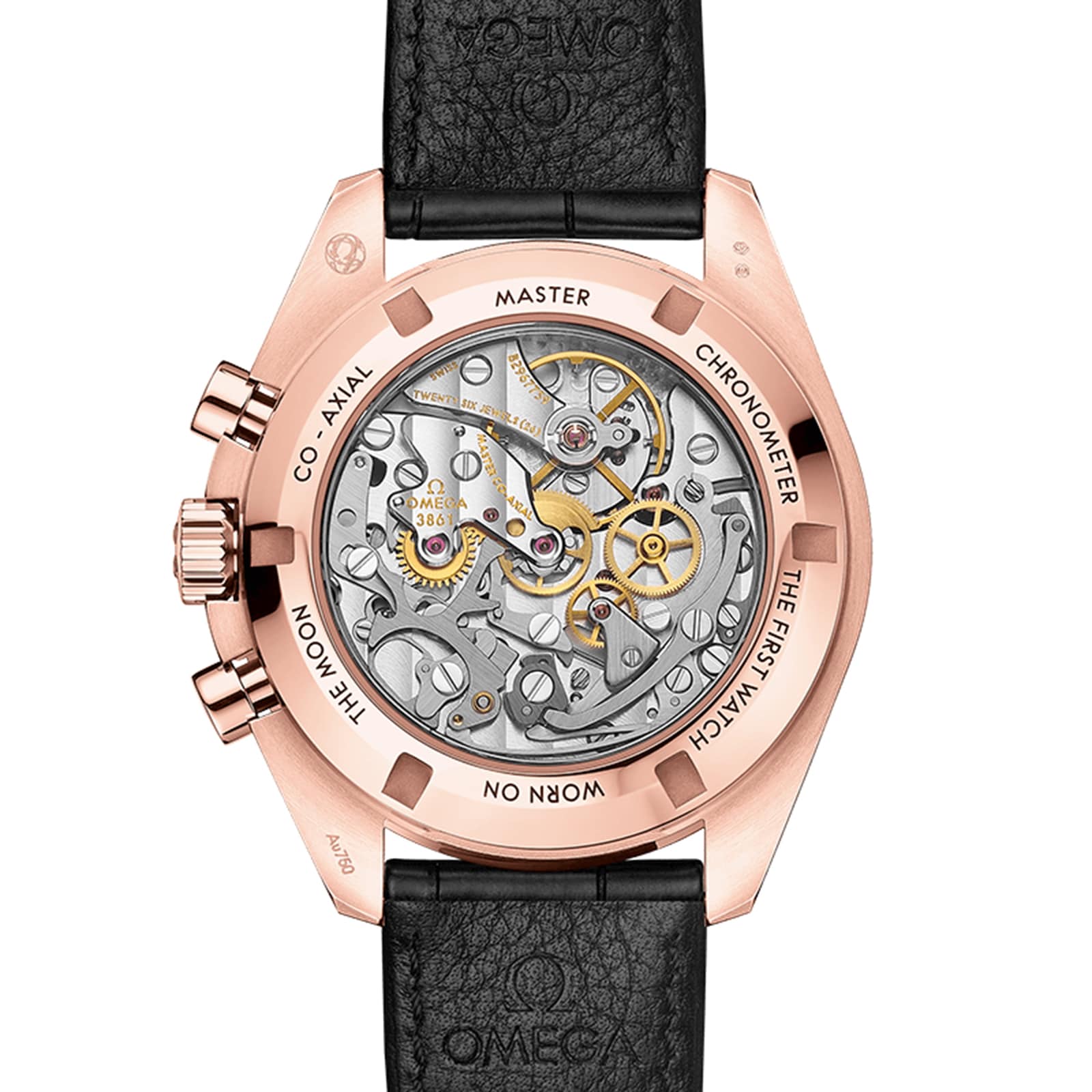 Inspired by the 4th generation Speedmaster style worn on the moon Driven by the 3861 calibre movement 42mm 18K Sednda? gold case secured with a black leather strap Central chronograph and Tachymeter function Co-axial escapement for long-lasting precision LOVED ON EARTH AND BEYOND Inspired by the 4th generation Speedmaster style worn on the moon, The Speedmaster Moonwatch is one of Omega??s most iconic timepieces. Having been part of all six moon landings, this legendary watch captures the heart of brand??s pioneering spirit. Demonstrating the brand??s commitment to evolution, this new 2021 edition, offers yet more reliability, precision, and excellence with Master Chronometer certification. LEGENDARY FEATURES Presented in an asymmetrical 18K Sedna? gold case with a black leather strap, this 42mm watch features a black step dial with applied Omega logo and the iconic dot over 90 on the anodized aluminium bezel ring. Powered by a 3861 calibre movement, the dial features a small seconds sub-dial, 30-minute recorder and 12- hour recorder, as well as central chronograph functionality. This revolutionary timepiece also features a co-axial escapement for long-lasting precision and a silicon balance spring for superior anti-magnetism.