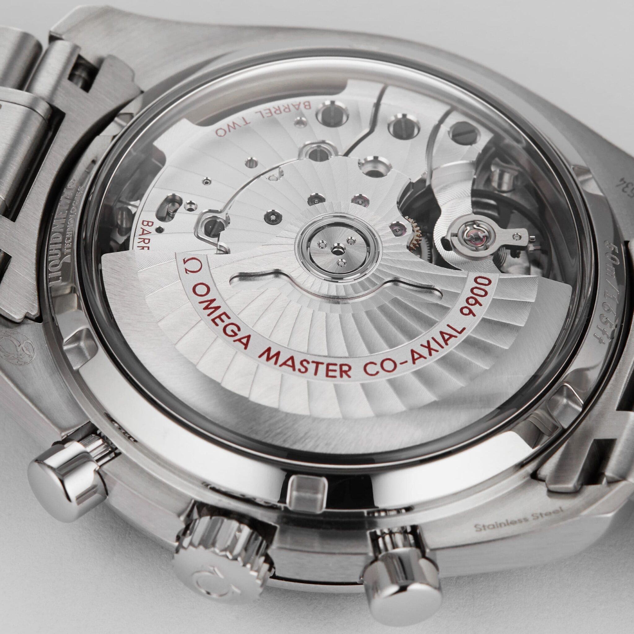 A tribute to OMEGA??s motor heritage Powered by 9900 calibre movement Iconic tachymeter scale in Liquidmetal? Master Chronometer approved by METAS 44.25 mm stainless steel case paired with a stainless steel bracelet DISTINCTIVE RACING DESIGN The Speedmaster Racing collection celebrates the iconic model??s racing heritage. A distinctive racing-style minute track adds a sporty touch to the black dial, while 12-hour and 60-minute recorders add enhanced functionality for the racetrack. ADVANCED ACCELERATION This Master Chronometer features a 44.25 mm stainless steel case and bracelet with a black ceramic bezel including a tachymeter scaled in Liquidmetal? to measure speed based on distance. The bold black dial features rhodium-plated hands and 18K white gold arrowhead indexes with white Super-LumiNova for improved visibility. This classic timepiece is powered by the 9900 calibre movement approved by METAS.