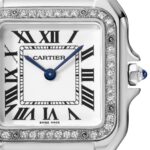 Panth??re de Cartier – a quintessential jewellery watch Impeccably crafted with soft clean lines that give a sense of gentle fluidity Housed in a 29 x 37mm steel case set with brilliant cut diamonds for sophisticated radiance Silvered dial with signature blued-steel sword-shaped hands Finished with a flexible steel bracelet that echoes the graceful movement of the panther A NOD TO 1980S GLAMOUR Embodying the charm of the 1980s, the Panth??re de Cartier is eternally stylish and truly iconic. Inspired by the bold design trends of the decade, the collection is characterised by the ultra-flexible bracelet, inspired by the agile movements the Maison’s emblematic animal – the panther. STRENGTH AND AGILITY Effortlessly elegant, this iconic watch captures Cartier’s daring spirit. With gently rounded edges, the 29mm x 37mm steel case emphasises the model’s sophisticated allure. Framed by radiant brilliant cut diamonds, the silvered dial retains the brand’s iconic aesthetic with blued-steel sword-shaped hands and classic Roman numerals. Driven by dependable Quartz movement, this model is water resistant to 3 bar (30 metres) and fastens securely with an agile steel bracelet.