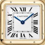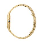 Panth??re de Cartier watch, large model, quartz movement. 18K yellow gold (750/1000) case. Dimensions: 31 mm x 42 mm, thickness: 6.71 mm, crown with a blue sapphire, silvered dial, blued-steel sword-shaped hands, 18K yellow gold (750/1000) bracelet. Water-resistant up to 3 bar (approx. 30 meters/100 feet).