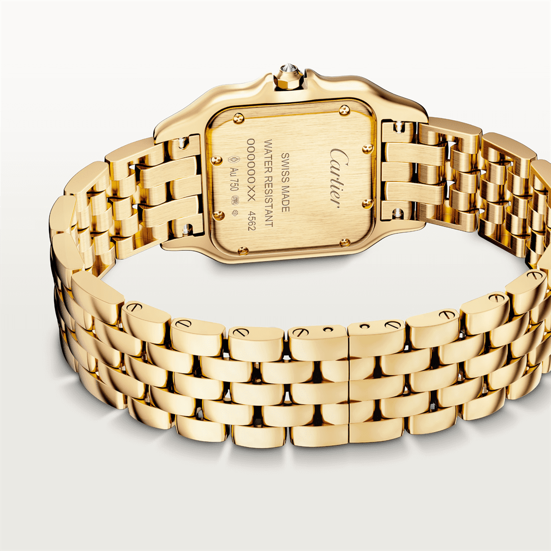 Designed in the 1980s, the Panth??re de Cartier watch takes its name from the bracelet of the same name. Its ultra-flexible structure echoes the movements of the Maison??s emblematic animal. Both a watch and a piece of jewelry, it is a veritable fashion icon for women with bold style.