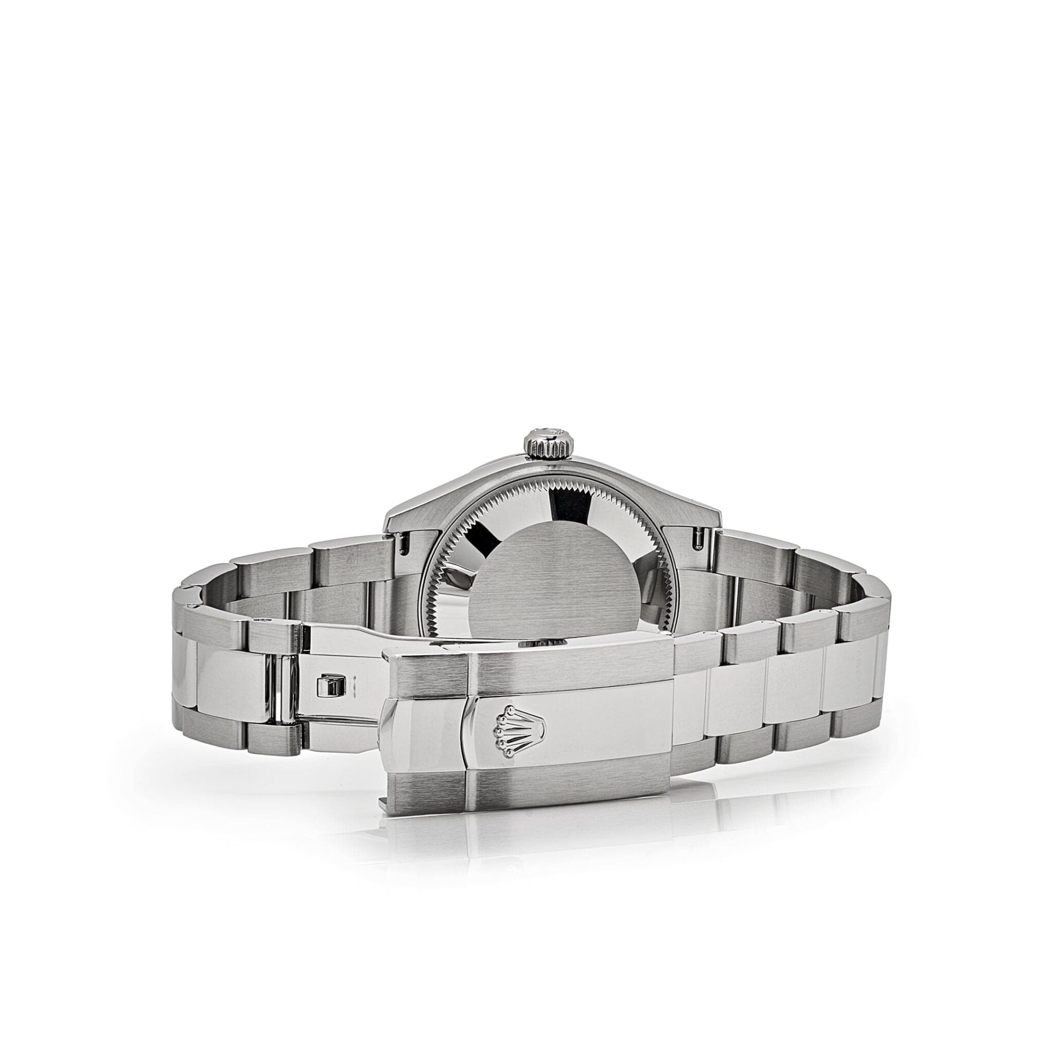 Aesthetically, the has spanned eras, while retaining the enduring codes that make it, notably in its traditional versions, one of the most recognized and recognizable of watches. This Oyster Perpetual Datejust 31 in stainless steel features a pink dial and a oyster bracelet. The light reflections on the case sides and lugs highlight the elegant profile of the 31 mm Oyster case, which is fitted with a fluted white gold bezel.