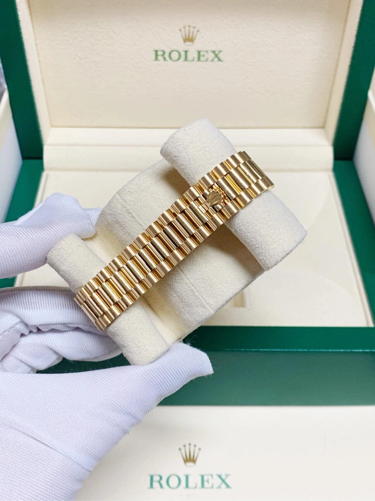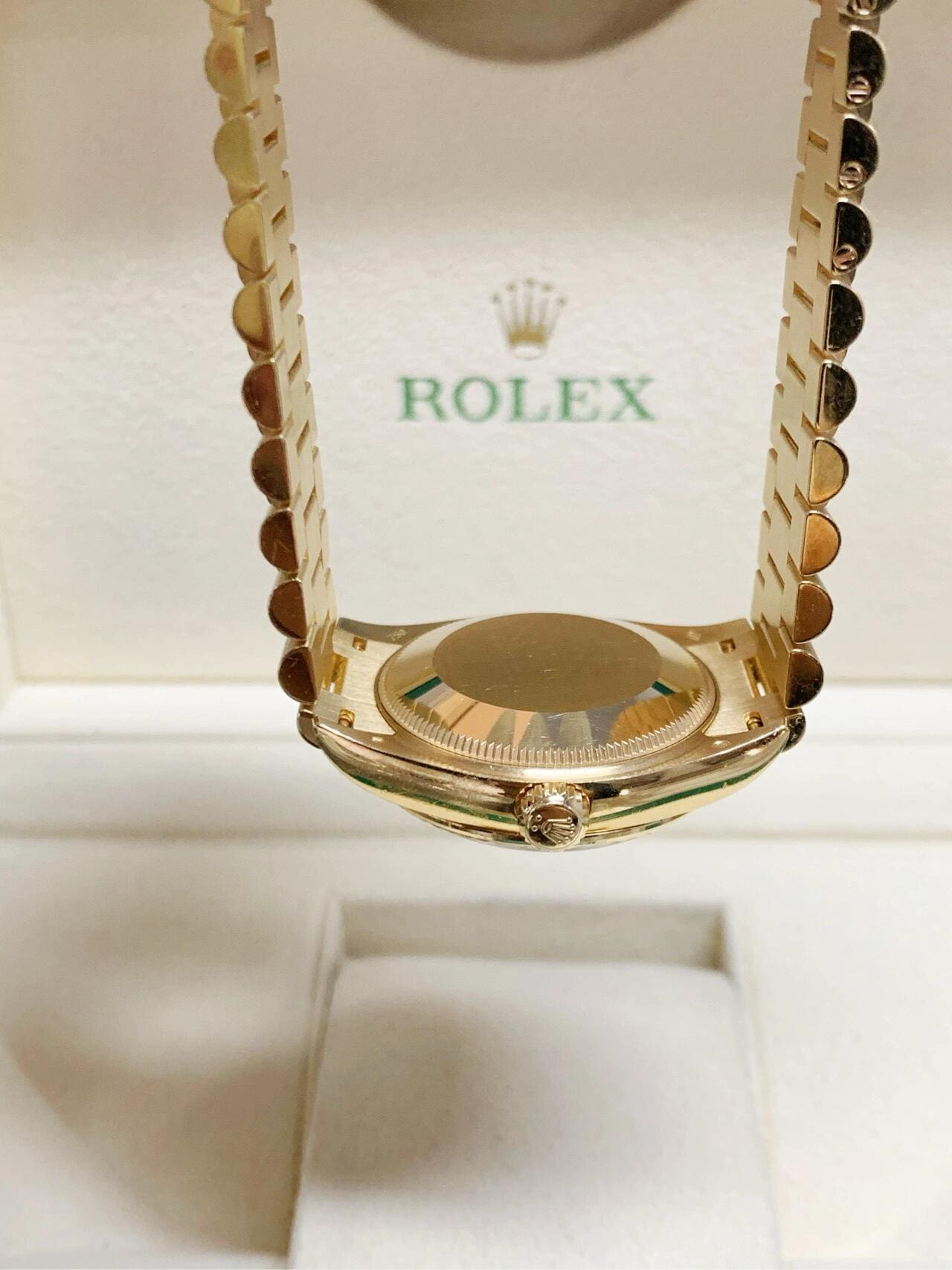 Crafted entirely in 18k yellow gold, the 31mm case is paired with a President bracelet, known for its semi-circular links and seamless elegance. A fluted bezel completes the signature Datejust silhouette. With its rare dial material and rich gold construction, this reference is a celebration of Rolex’s mastery in blending fine watchmaking with precious materials for a truly elevated everyday watch.