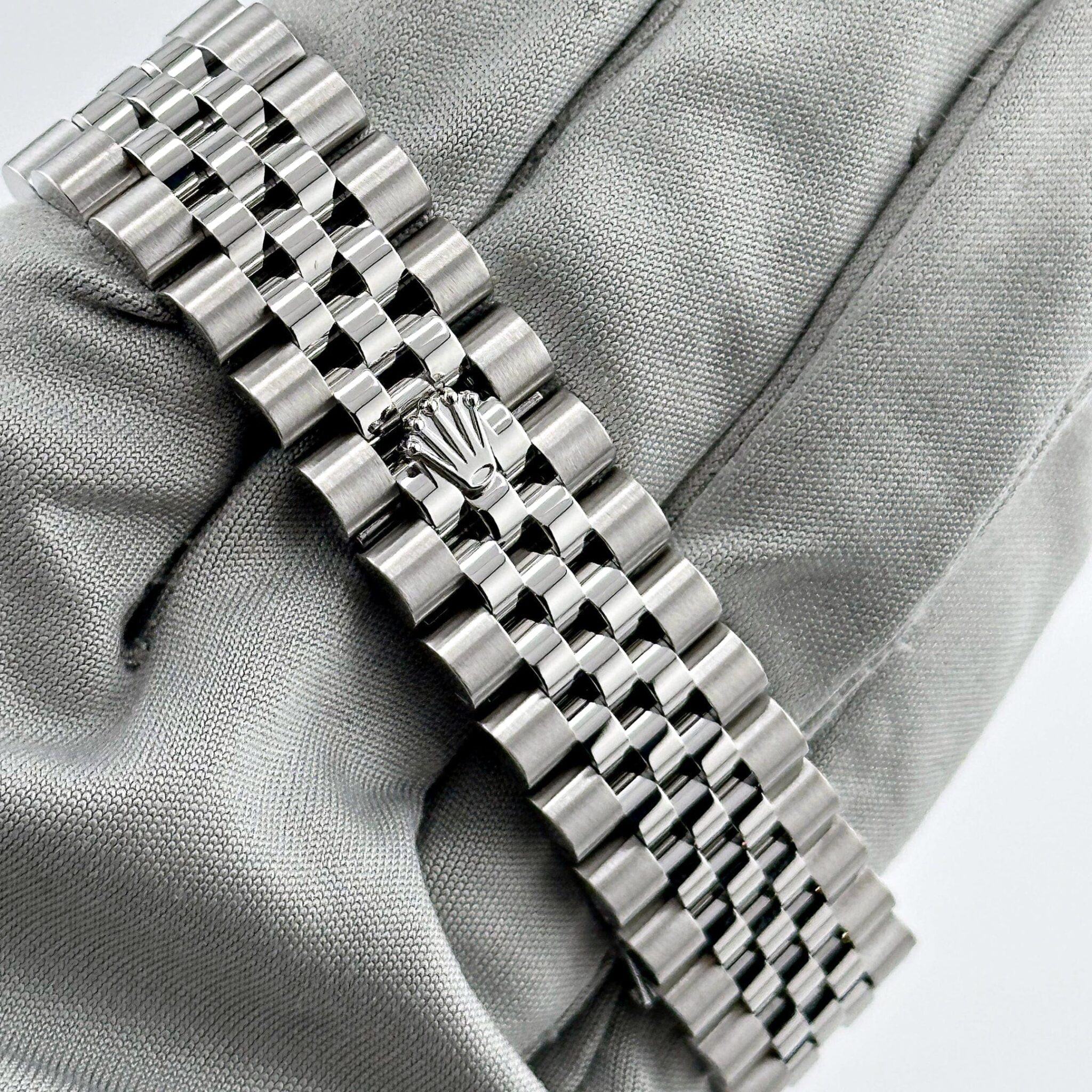 The captivating violet dial is adorned with Roman numerals in white gold, providing a subtle yet striking contrast. The smooth sweep of the hour, minute, and second hands ensures a balanced design, while the date display at 3 o??clock, magnified by the Cyclops lens, remains a hallmark of the Datejust collection. Paired with a Jubilee bracelet for unmatched comfort and elegance, this timepiece is ideal for collectors seeking a perfect blend of style, functionality, and Rolex’s renowned craftsmanship.