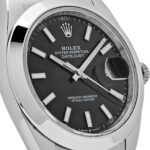 The Rolex 126300 is a sophisticated blend of timeless design and modern versatility, crafted entirely in stainless steel with a sleek 41mm case. Its bold black dial features luminous baton hour markers and a date window at 3 o??clock, magnified by Rolex??s signature Cyclops lens for enhanced readability.