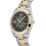 The slate grey dial is accented with bold green Roman numerals, a hallmark of the ‘Wimbledon’ style, offering a modern twist on the classic Datejust design. The dial also features Chromalight hands for exceptional readability and a date display at 3 o??clock magnified by the signature Cyclops lens.