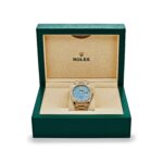 Rolex Day-Date 36 128348RBR Yellow Gold Diamond Bezel Turquoise Diamond Dial