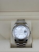 The Rolex II 218239 is a commanding timepiece that combines timeless design with luxurious craftsmanship. Crafted in 18k white gold, the 41mm case exudes both elegance and presence, while the signature fluted bezel adds a touch of refinement unique to Rolex??s Day-Date collection.