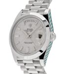 The iconic day display at 12 o??clock and date window at 3 o??clock, magnified by Rolex??s Cyclops lens, maintain the functionality that defines the Day-Date collection. Paired with the celebrated President bracelet, crafted in platinum for ultimate comfort and refinement, the Day-Date 228206 represents the perfect fusion of Rolex??s technical mastery and artistic excellence. This extraordinary timepiece is an essential choice for collectors seeking the ultimate in exclusivity and craftsmanship.