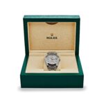 The Rolex 228206 is a pinnacle of luxury and exclusivity, crafted entirely from 950 platinum for an unmatched presence and weight. Its 40mm case is paired with the signature smooth bezel, emphasizing the sleek elegance of this iconic design. The dial is a stunning piece of natural meteorite, showcasing unique crystalline patterns that make each watch truly one of a kind. Factory-set diamond hour markers further enhance the dial’s brilliance, adding a touch of sophistication to its celestial allure.