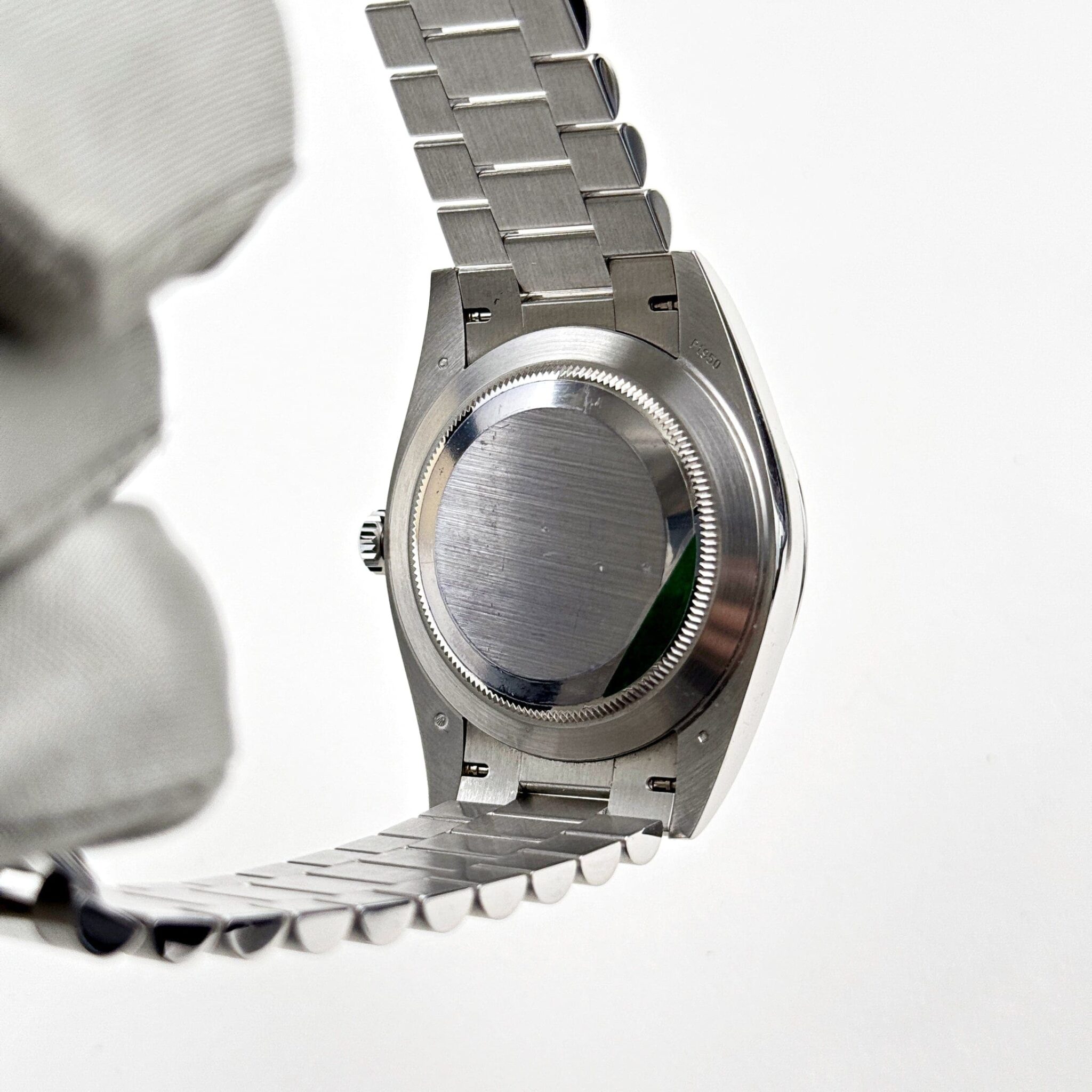 The Rolex 228206 in 950 platinum is a masterpiece of refinement and exclusivity. The rich green hue is enhanced by Arabic numerals, adding a contemporary twist to the timeless design.