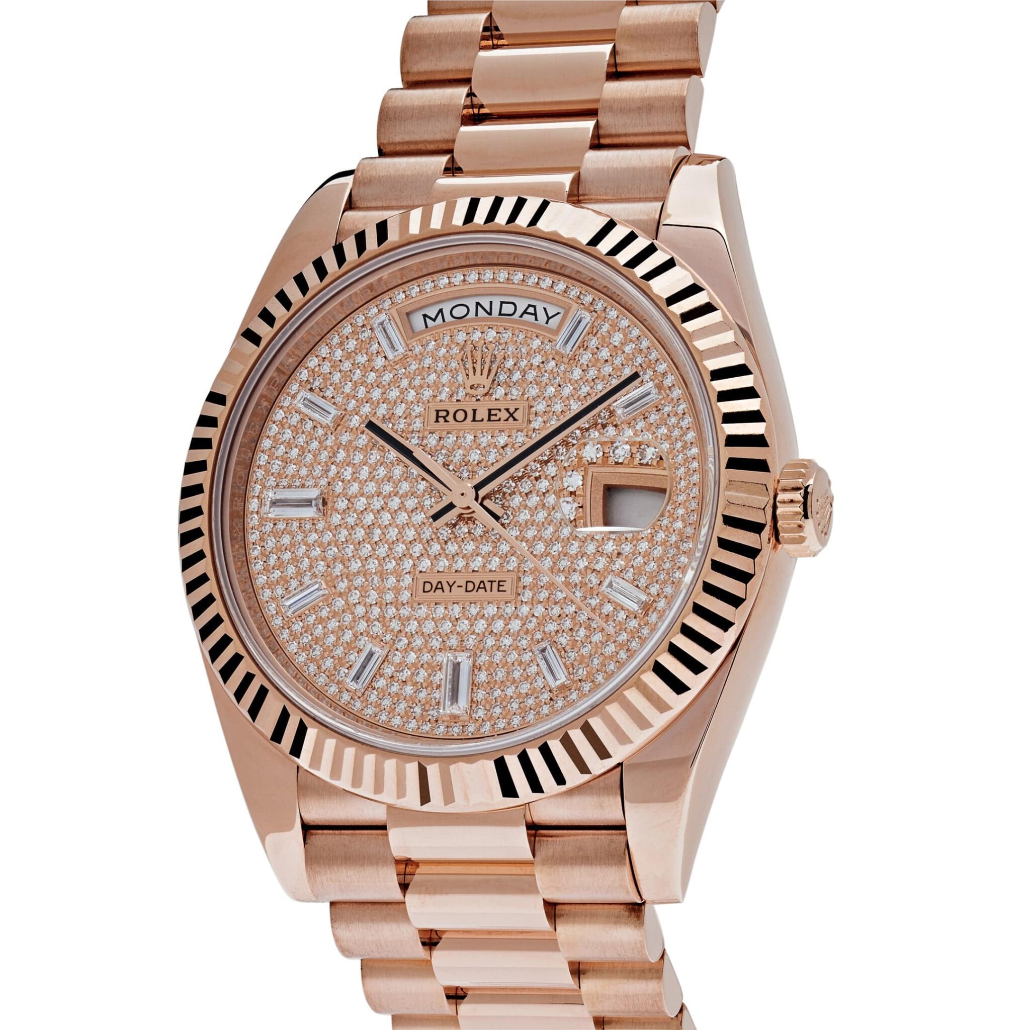 Rolex Day-Date 40 228235 Rose Gold Baguette Diamond Paved Dial