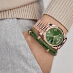 The olive green dial is a standout feature, offering a vibrant and modern twist on the classic Day-Date design. Adorned with rose gold Roman numeral hour markers, the dial achieves a perfect balance of elegance and legibility. The iconic day display at 12 o??clock and the date window at 3 o??clock, magnified by a Cyclops lens, maintain the watch’s signature functionality.