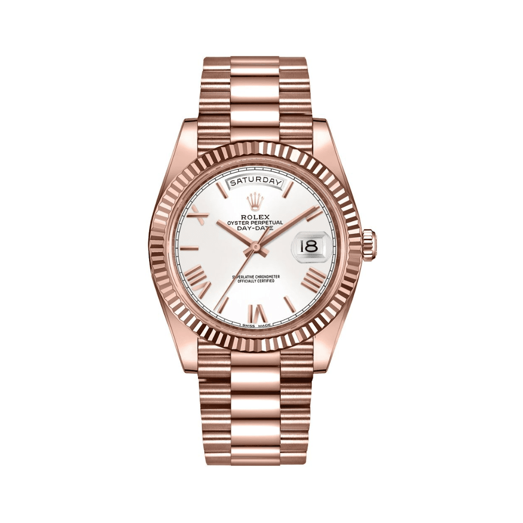 Rolex Day-Date 40 228235 Rose Gold White Roman Dial