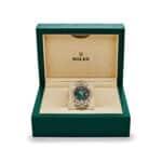 With its iconic day and date windows at 12 and 3 o??clock, the 228238 combines functionality with elegance. The yellow gold President bracelet enhances the watch??s luxurious appeal, making it a compelling choice for collectors who seek a timeless statement piece. The Day-Date 40 in green ombre is an exceptional blend of tradition and contemporary style, tailored for those who appreciate Rolex??s legacy in luxury watchmaking.