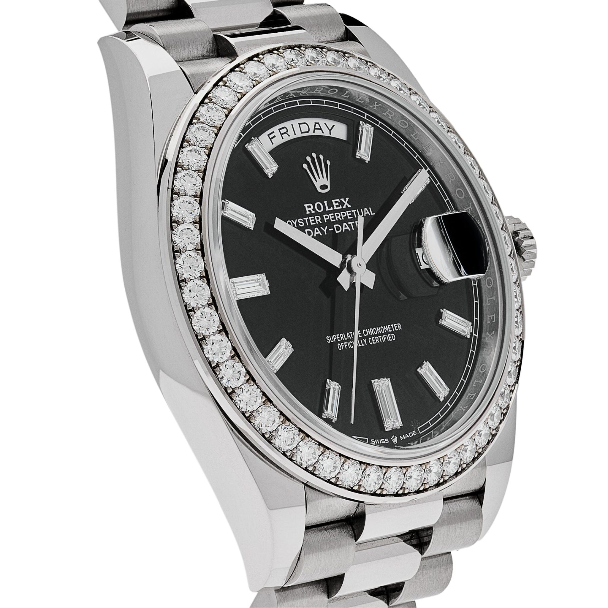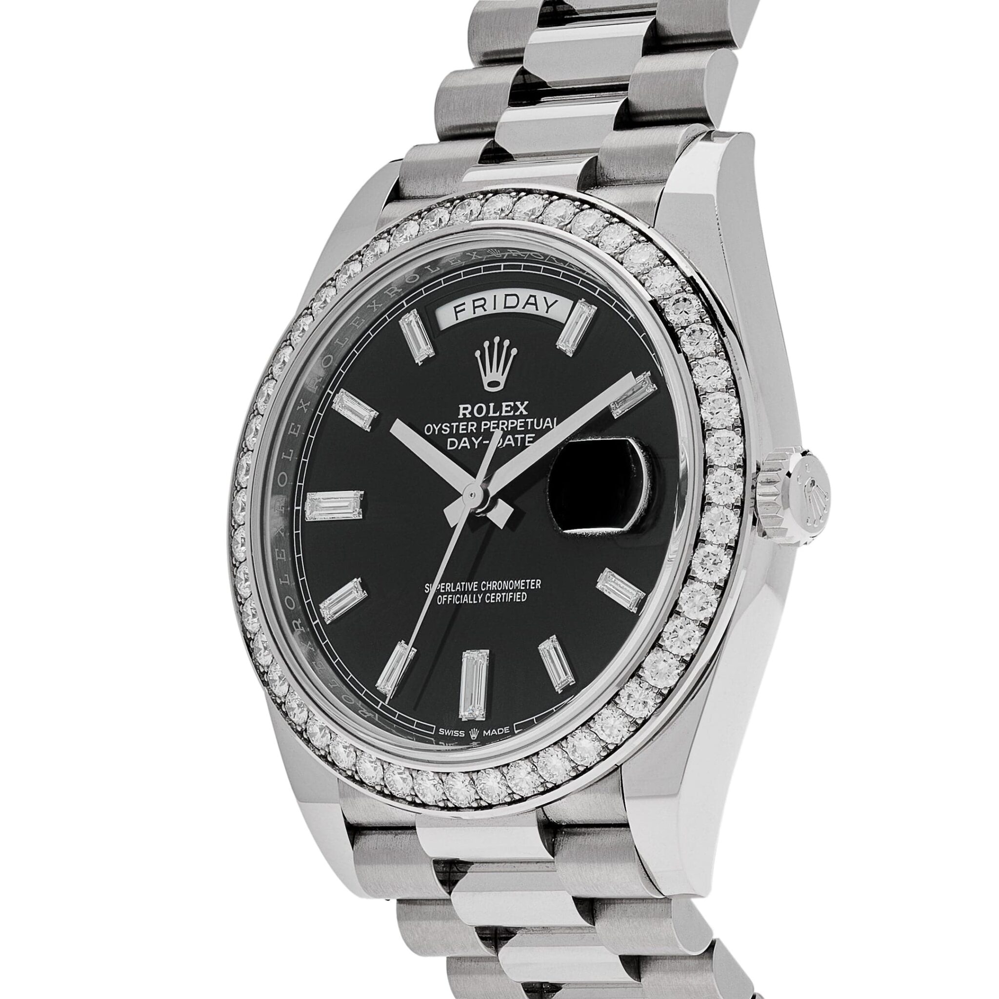Rolex Day-Date 40 228349RBR White Gold Black Dial Diamond Bezel (2021)