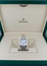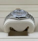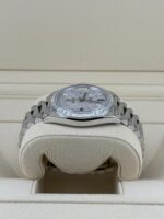 The Rolex 228396TBR is a dazzling display of refinement and prestige, crafted entirely in 950 platinum, the most precious metal in Rolex’s repertoire. Measuring 40mm, its case exudes sophistication, featuring a diamond-set bezel that amplifies its brilliance. The diamond-paved dial, adorned with baguette-cut blue sapphire hour markers, serves as the centerpiece of this extraordinary timepiece, embodying the perfect blend of opulence and precision.