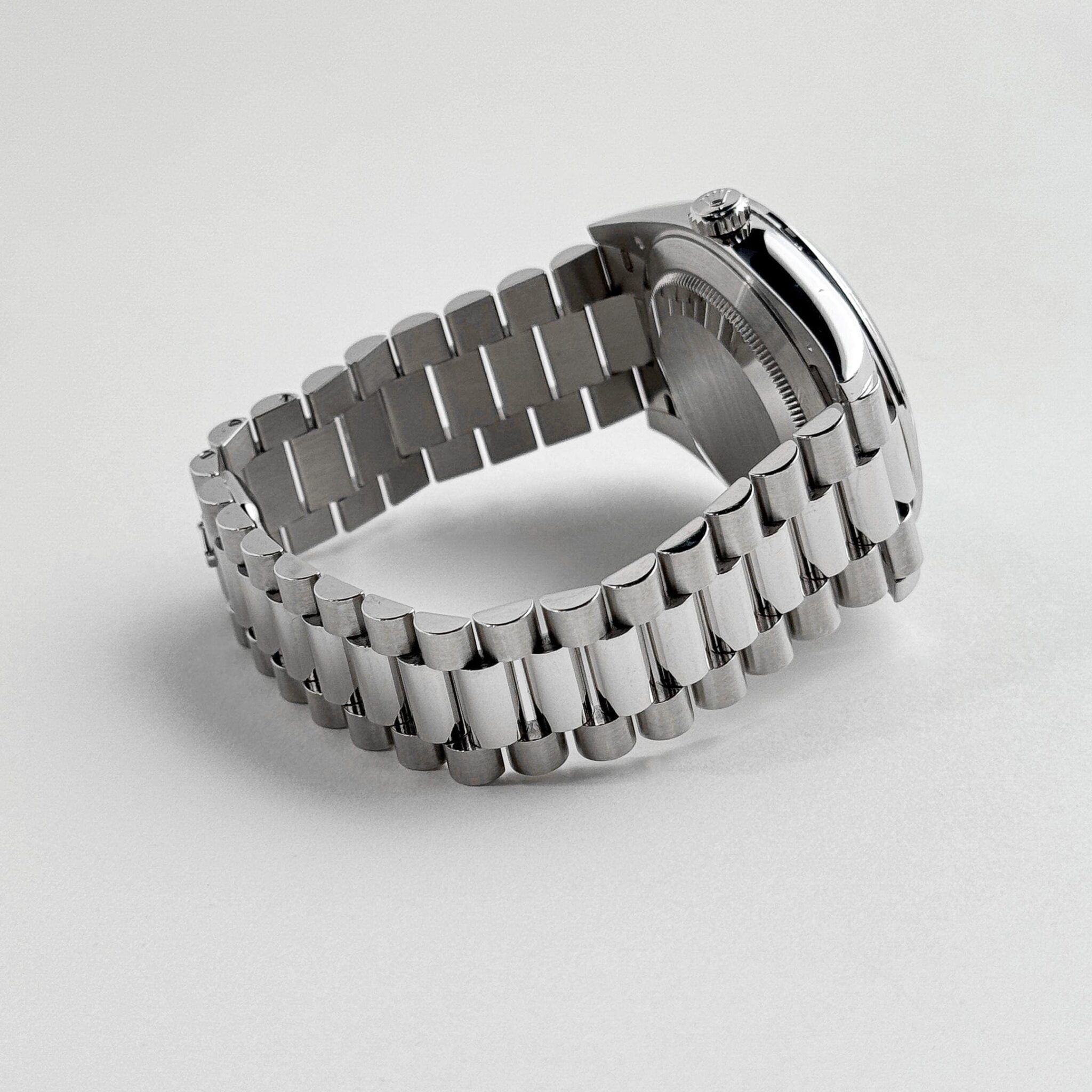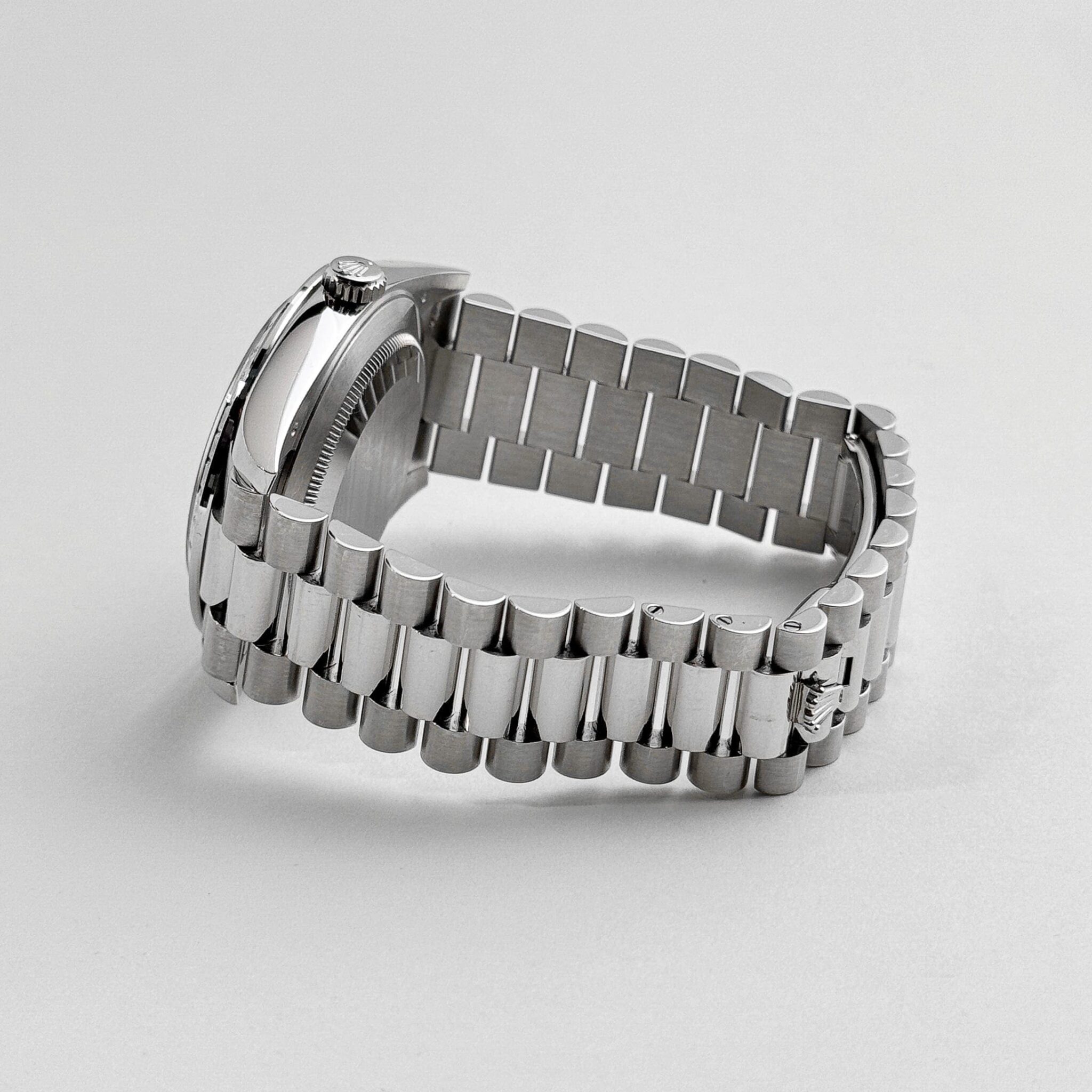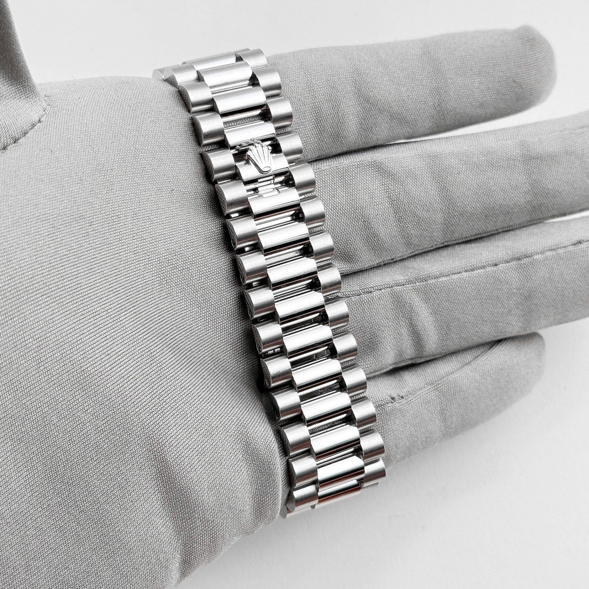 The Rolex 228396TBR epitomizes prestige and luxury. Crafted from platinum, the 40mm Oyster case radiates exclusivity, complemented by a diamond-set bezel that amplifies its brilliance. Paired with the signature President bracelet, this timepiece ensures both comfort and elegance.