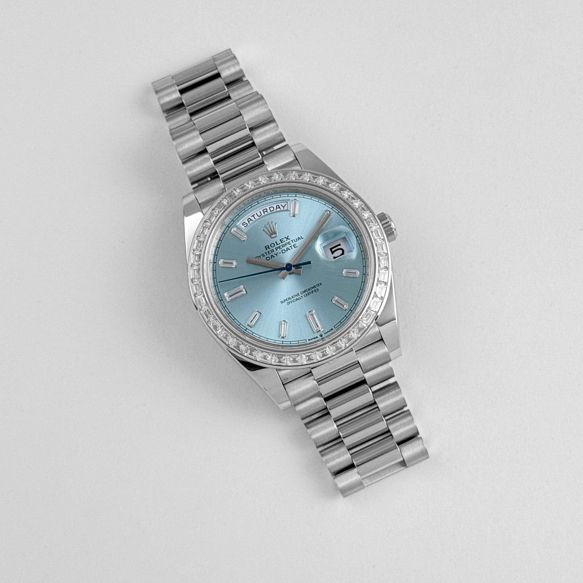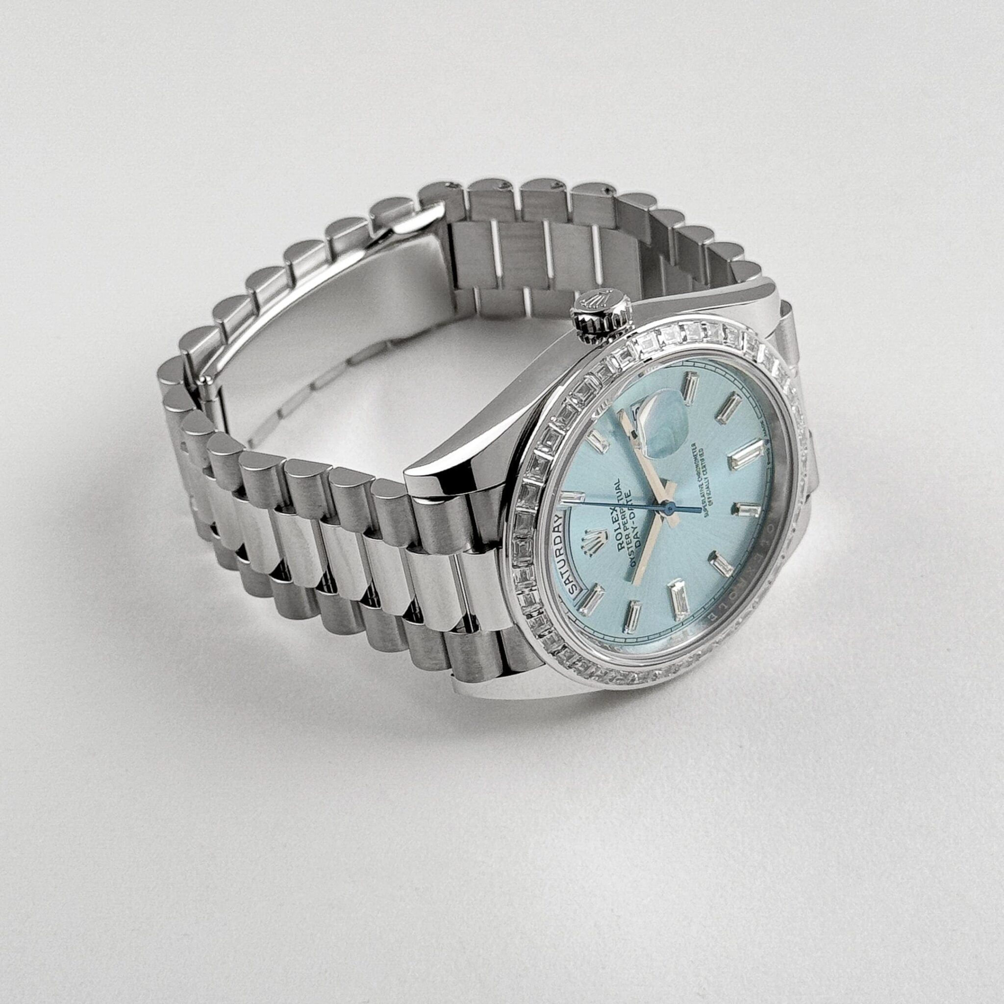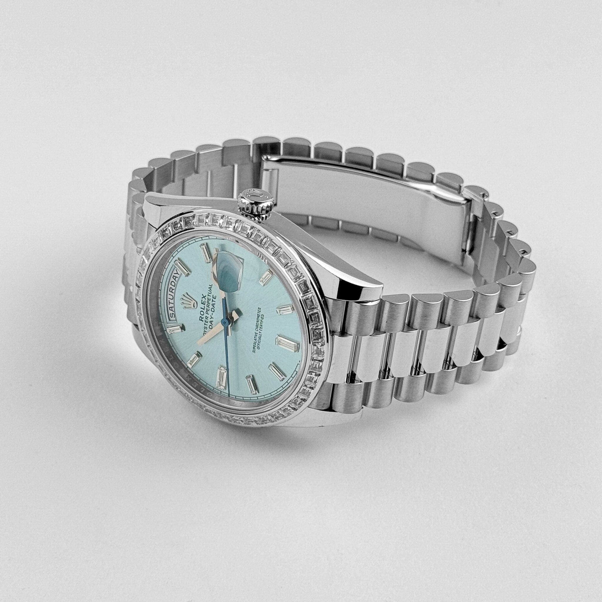 Rolex Day-Date 40 228396TBR Platinum Diamond Bezel Ice Blue Diamond Dial (2023)