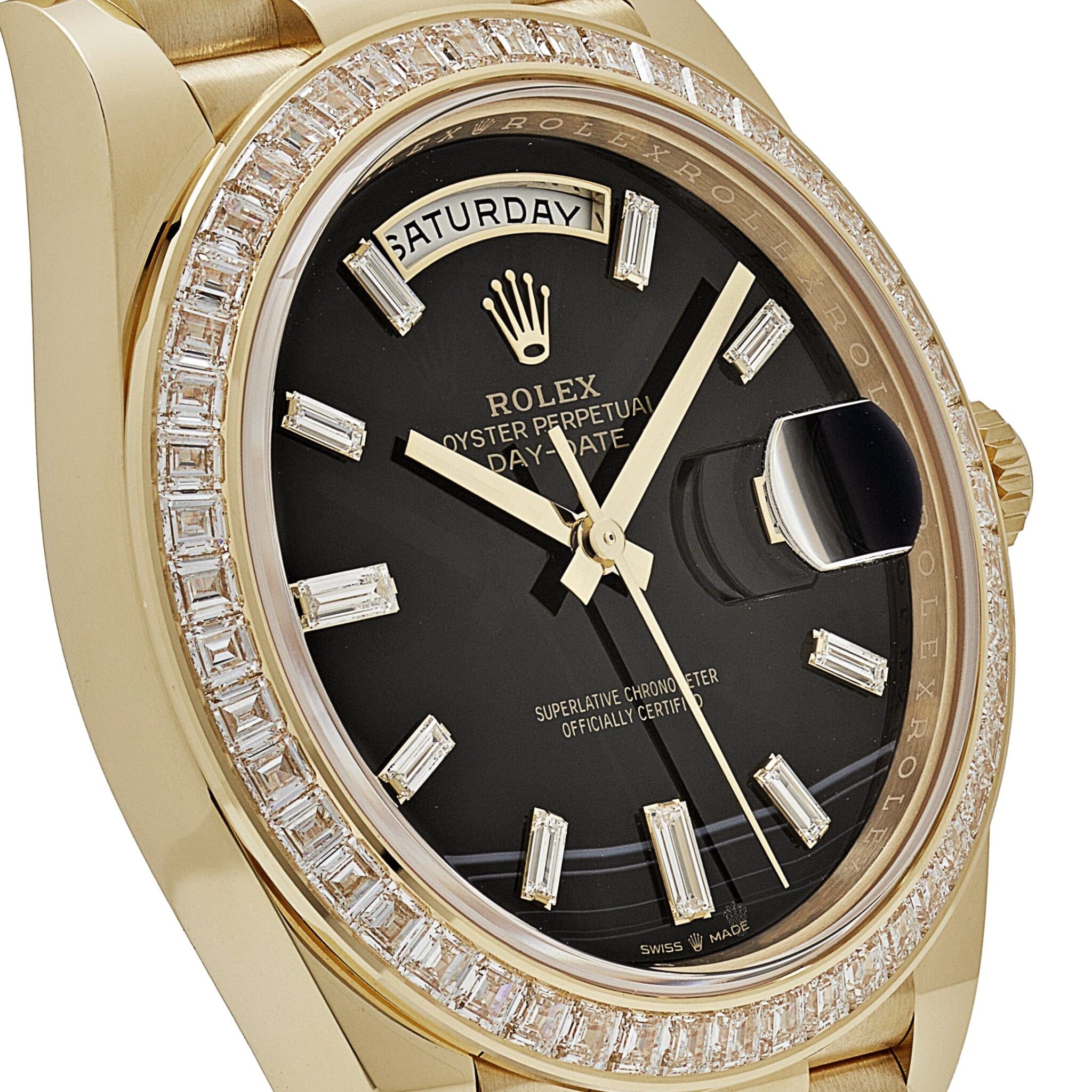 Rolex Day-Date 40 228398TBR Yellow Gold Onyx Baguette Diamond Dial Baguette Bezel (2023)